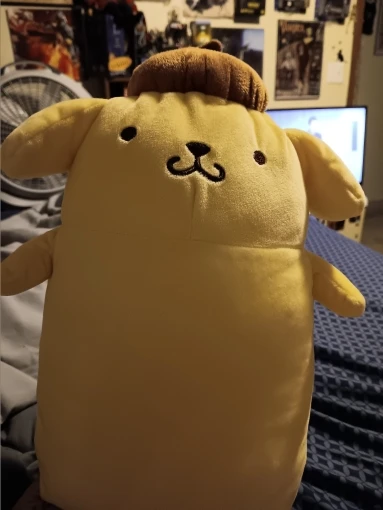 This 42cm/65cm long Pompompurin plush toy is the perfect cuddle buddy! Soft, huggable, and ultra-comfy, it's ideal for bedtime snuggles or as a cute decorative piece for any Sanrio fan's room.