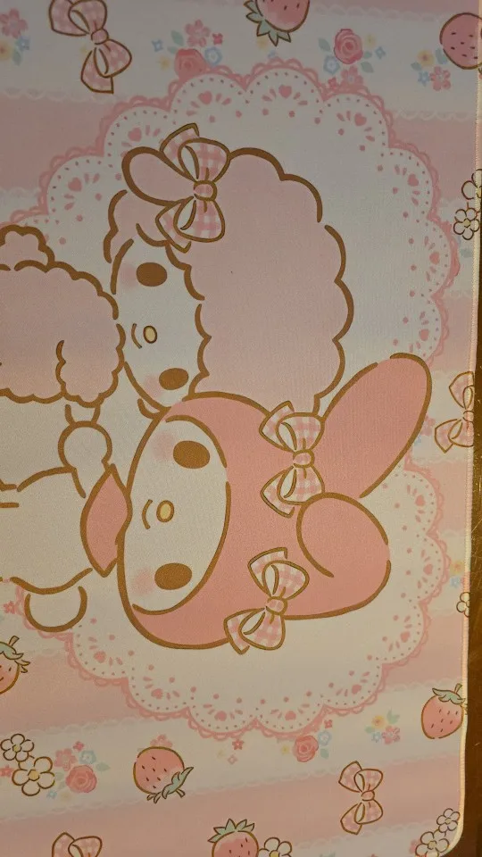 This adorable My Melody mousepad table mat adds a touch of kawaii charm to any workspace. Designed for both style and function, it offers a smooth surface for easy mouse movement and a soft, non-slip base to protect your desk. Perfect for work, study, or gaming, it's a must-have for Sanrio fans!