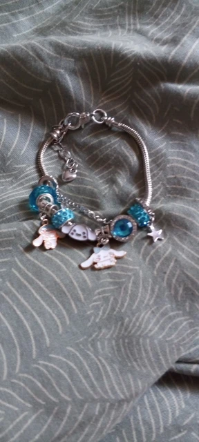 Add a dreamy touch to your style with this adjustable Cinnamoroll bracelet, featuring a soft blue gem/charm. Comfortable, cute, and perfect for Sanrio fans who love sweet and simple accessories.
