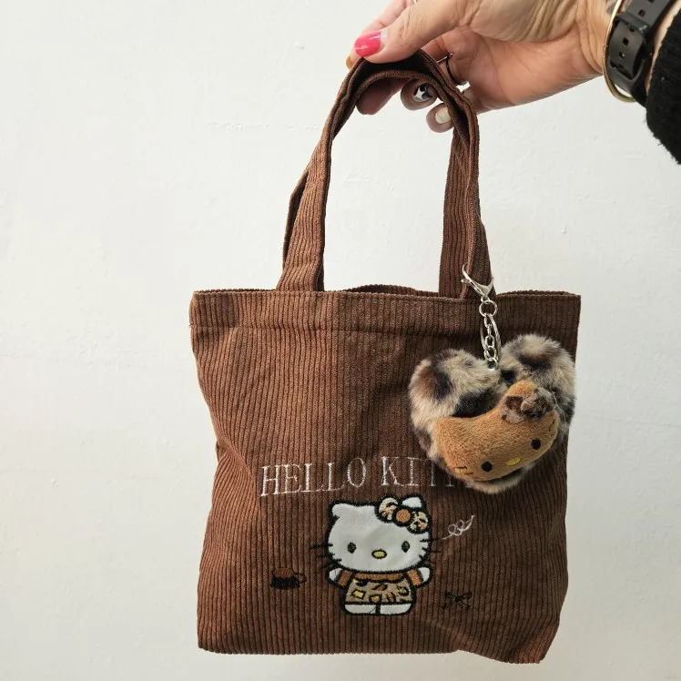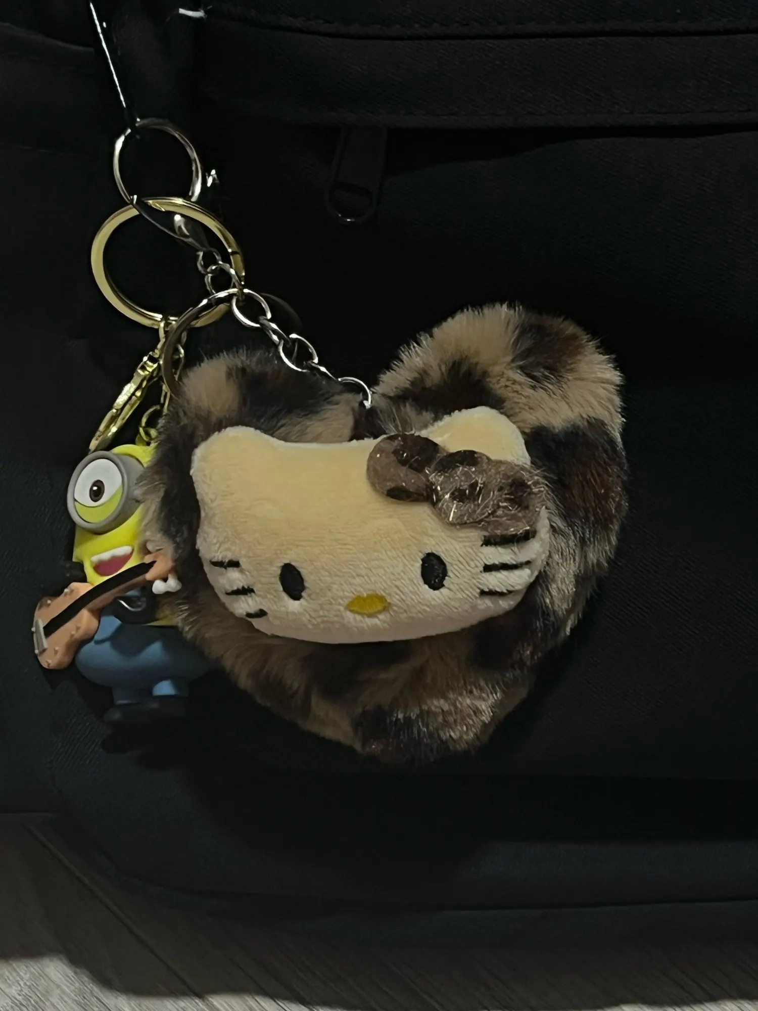 A soft and adorable Hello Kitty plush keychain featuring a cuddly leopard-print heart. Perfect for bags, backpacks, and gifts for any Hello Kitty fan.