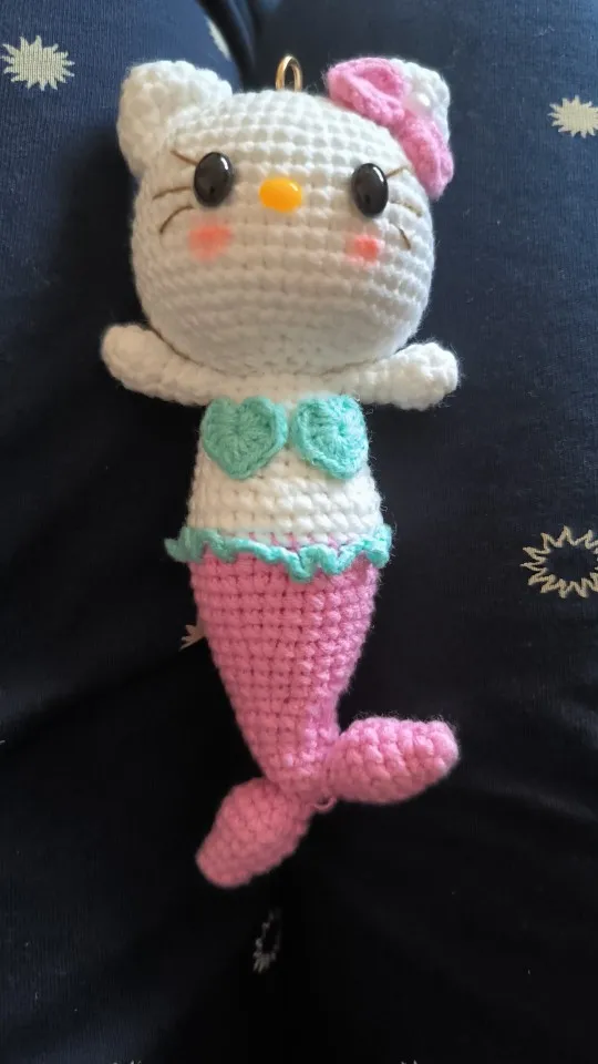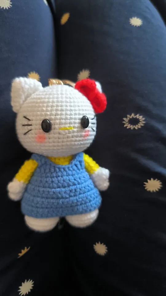 This mini Hello Kitty crochet keychain is handmade with soft yarn, creating a cute and tiny accessory that’s perfect for bags, keys, or gifting. Lightweight, charming, and full of kawaii style.