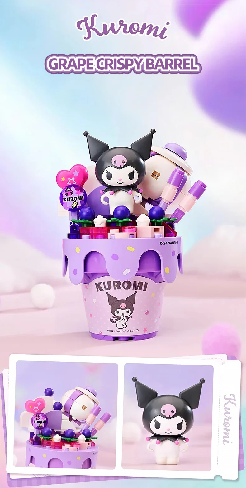 Build a sweet purple treat with this Sanrio Kuromi Ice Cream Cone Building Block Set, featuring adorable details and kawaii charm perfect for collectors and Kuromi fans.