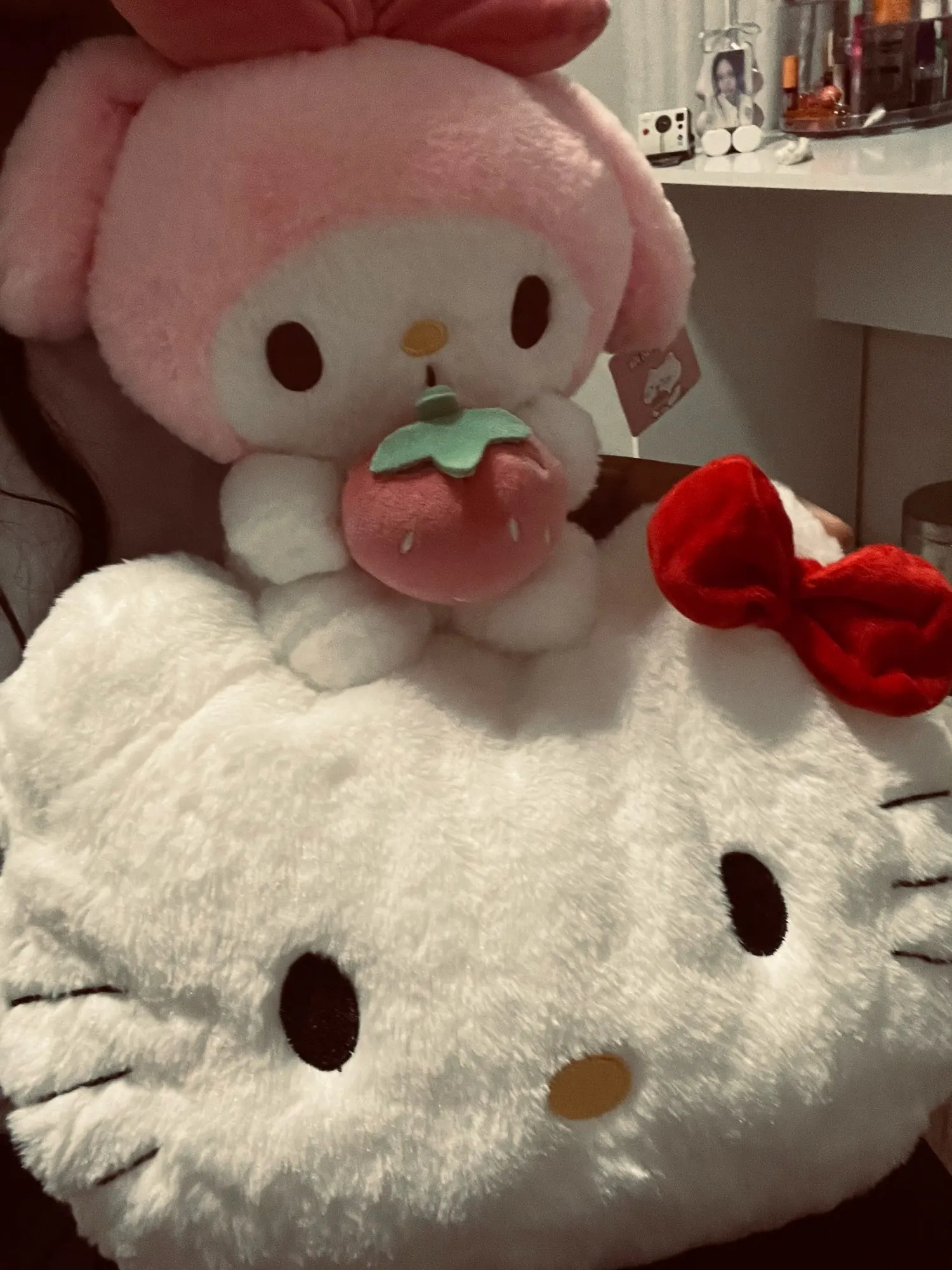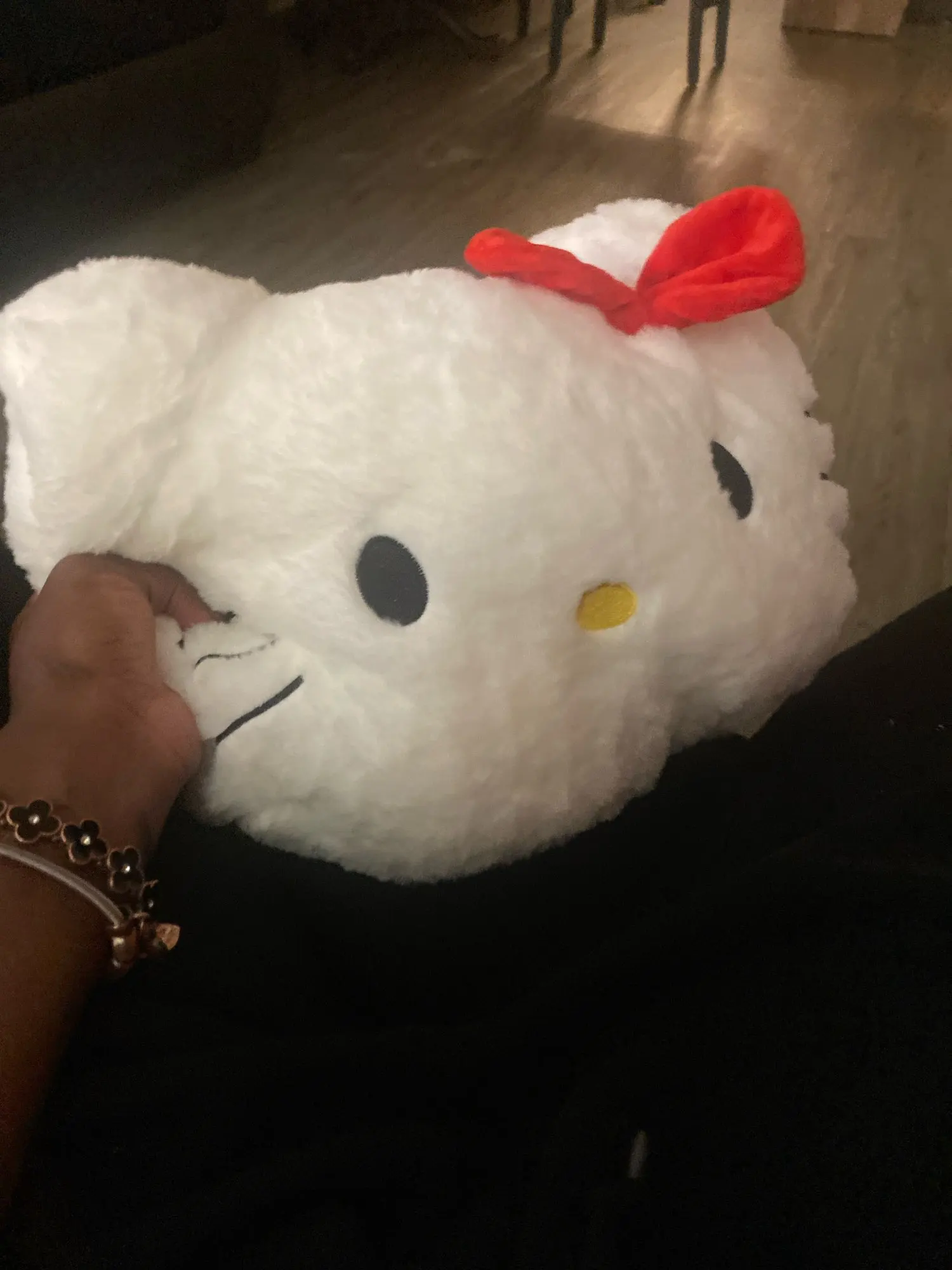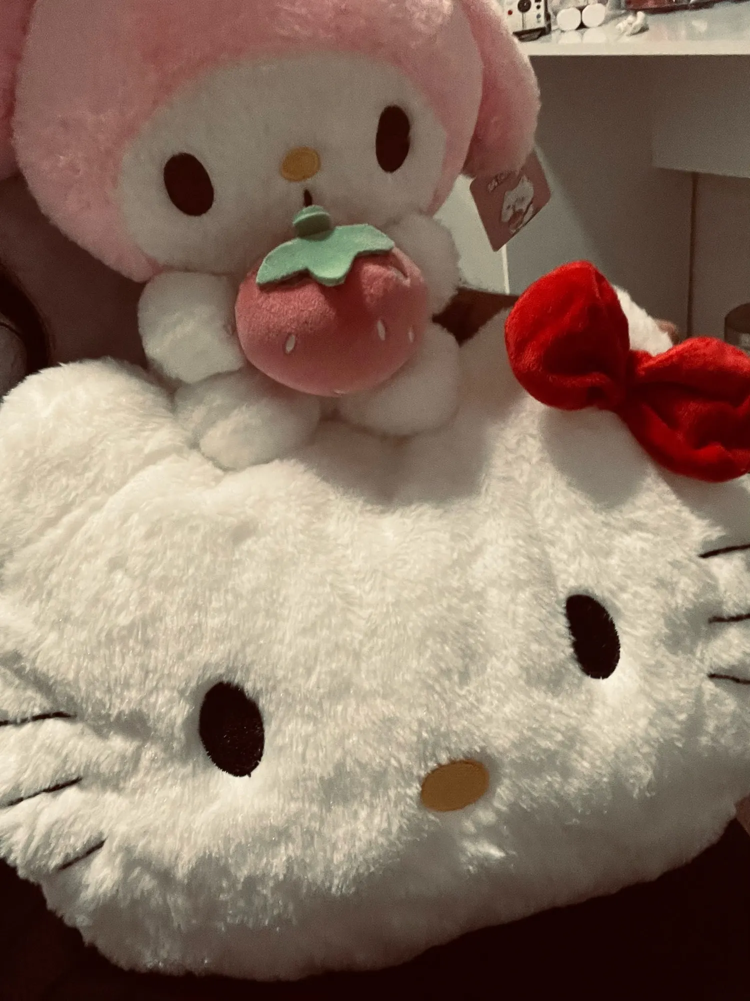 Soft, snuggly, and super cute — this Hello Kitty head pillow is perfect for naps, travel, or adding kawaii comfort to your car or couch!