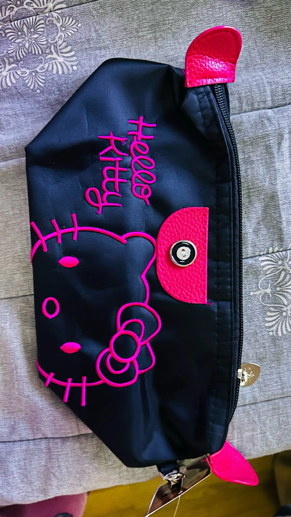 Keep your cosmetics organized in adorable style with this Kawaii Hello Kitty Waterproof Makeup Bag! Made from durable, easy-to-clean material, this cute pouch features Hello Kitty’s signature charm and a waterproof design to protect your beauty essentials.