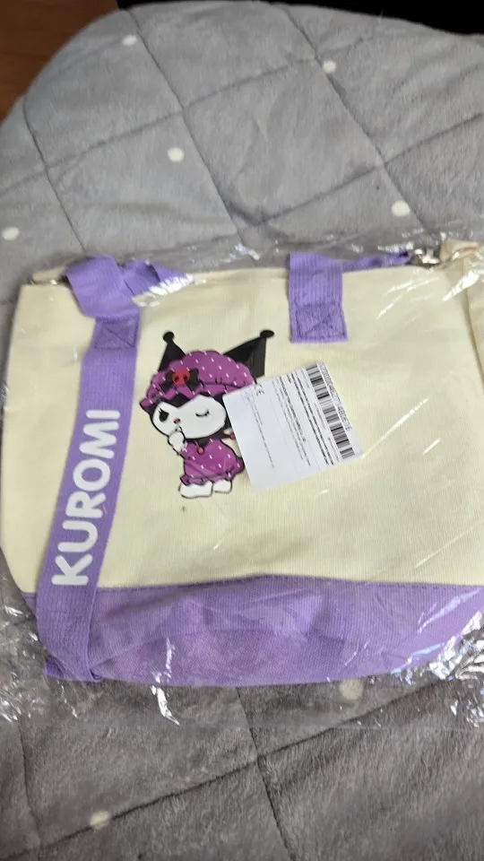 Cute Sanrio Kuromi Bucket Bag with an open-top design. Lightweight, practical, and full of Kuromi’s charm—perfect for daily use or adding a kawaii touch to any outfit.